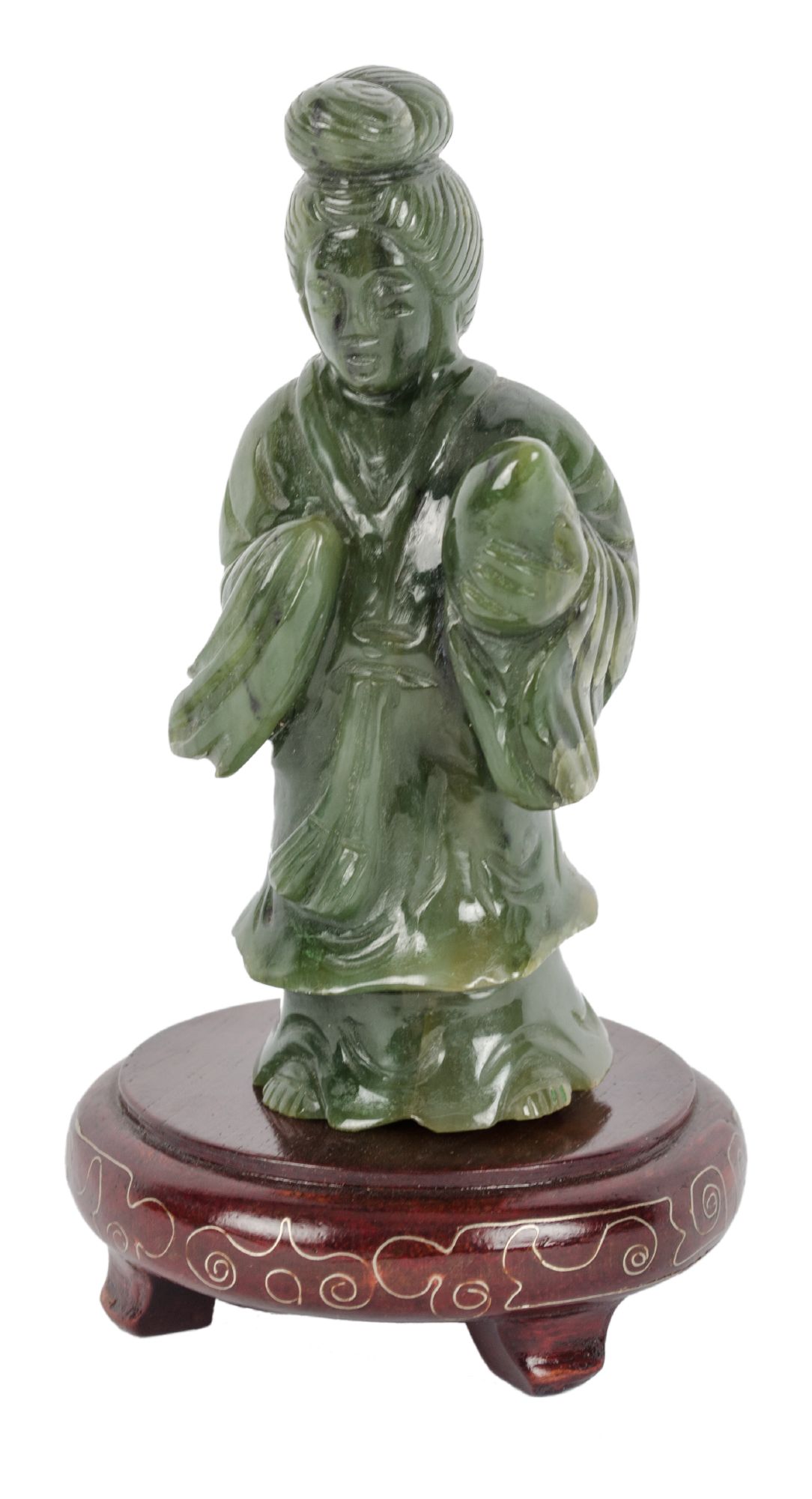 SCULTURA in serpentinite raffigurante "figura femminile", base in legno. Cina XX secolo Misure: h cm 12