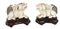 COPPIA SCULTURE in avorio raffiguranti "cani di Pho", basi in legno. Cina...