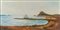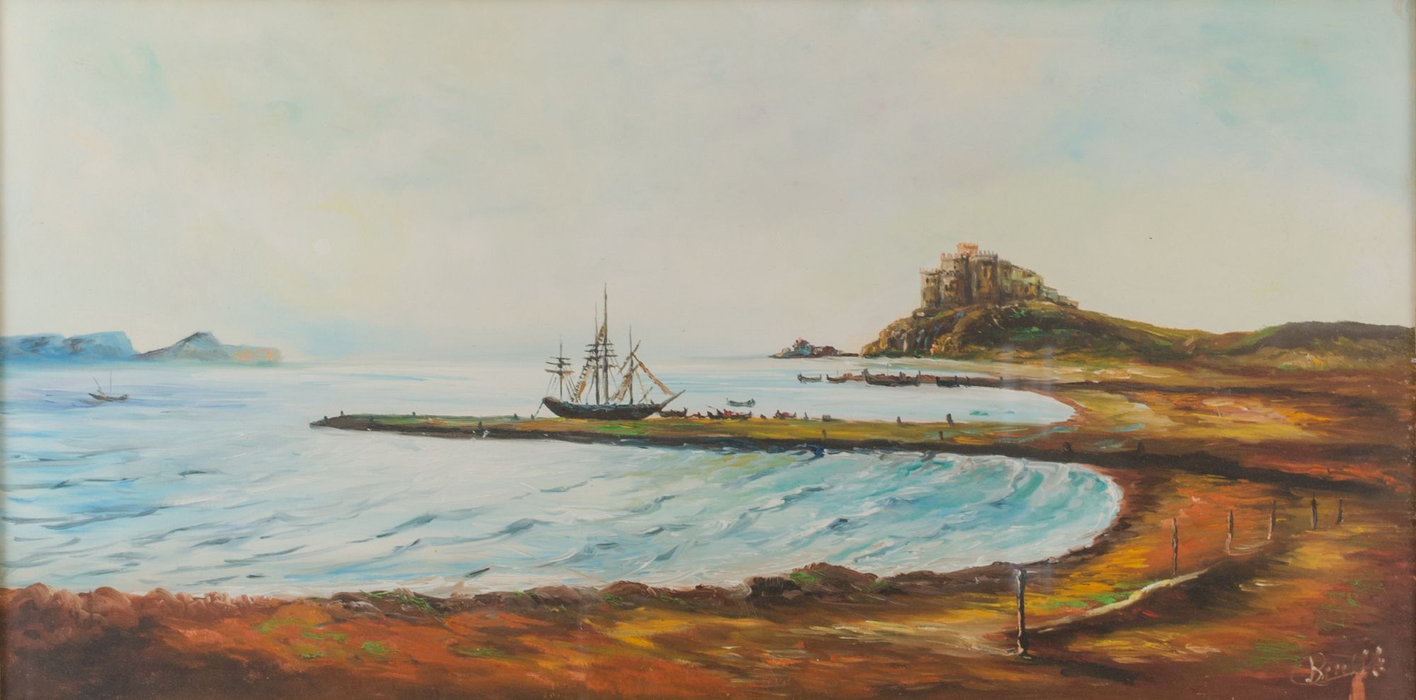 OLIO su tela "paesaggio costiero con castello", firmato in basso a destra....