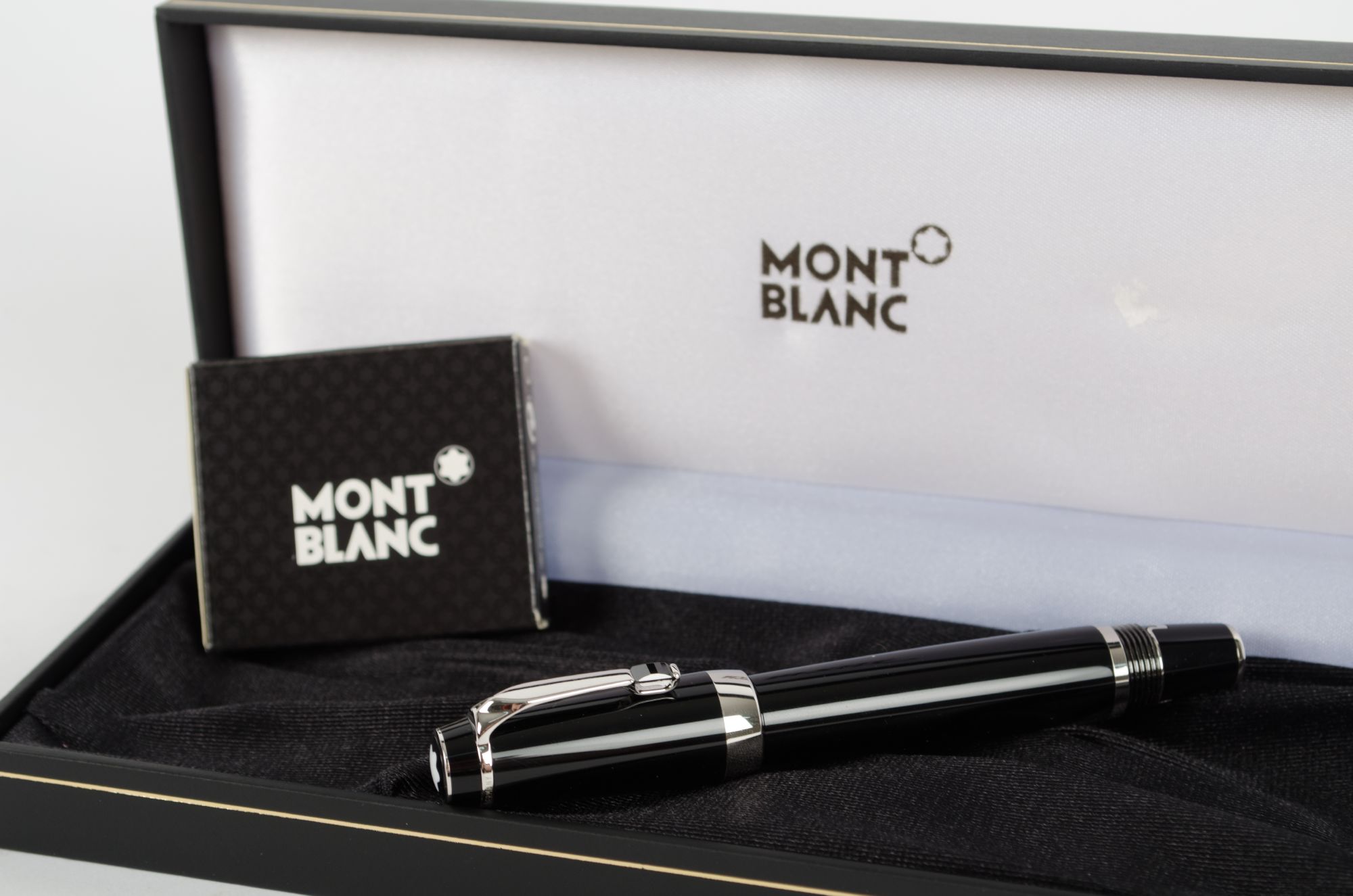 PENNA stilografia Mont Blanc con pennino in oro bianco 14 Kt. entro custodia.