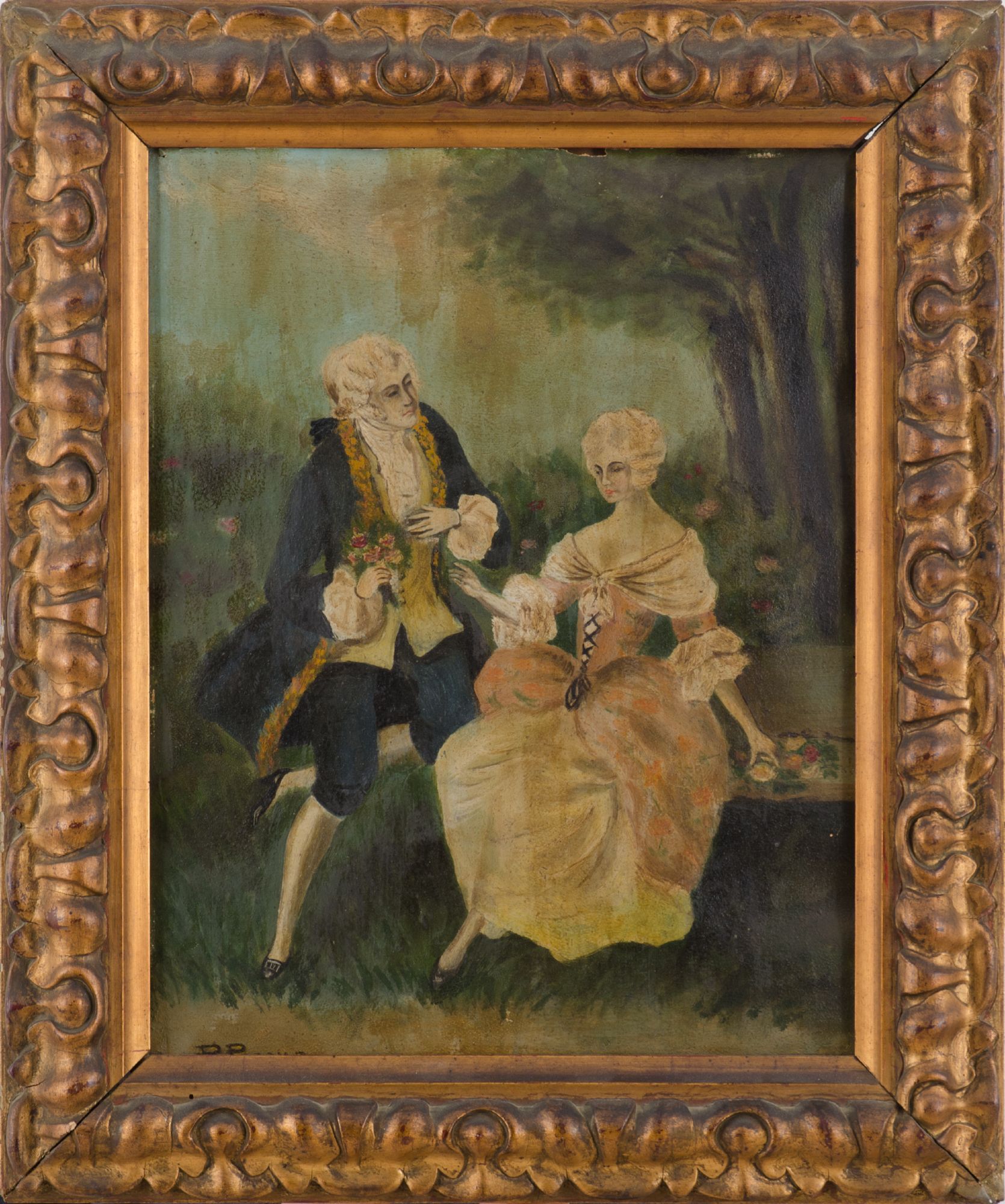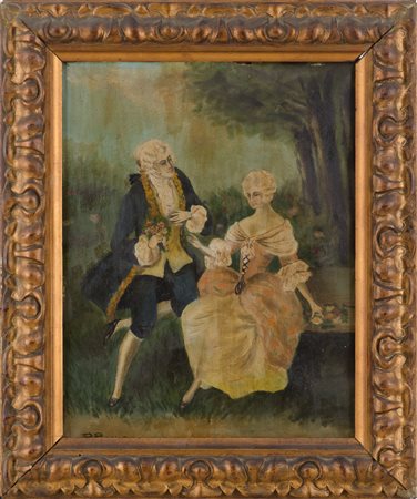 OLIO su tela "scena galante". Primi '900 Misure: cm 33 x 26