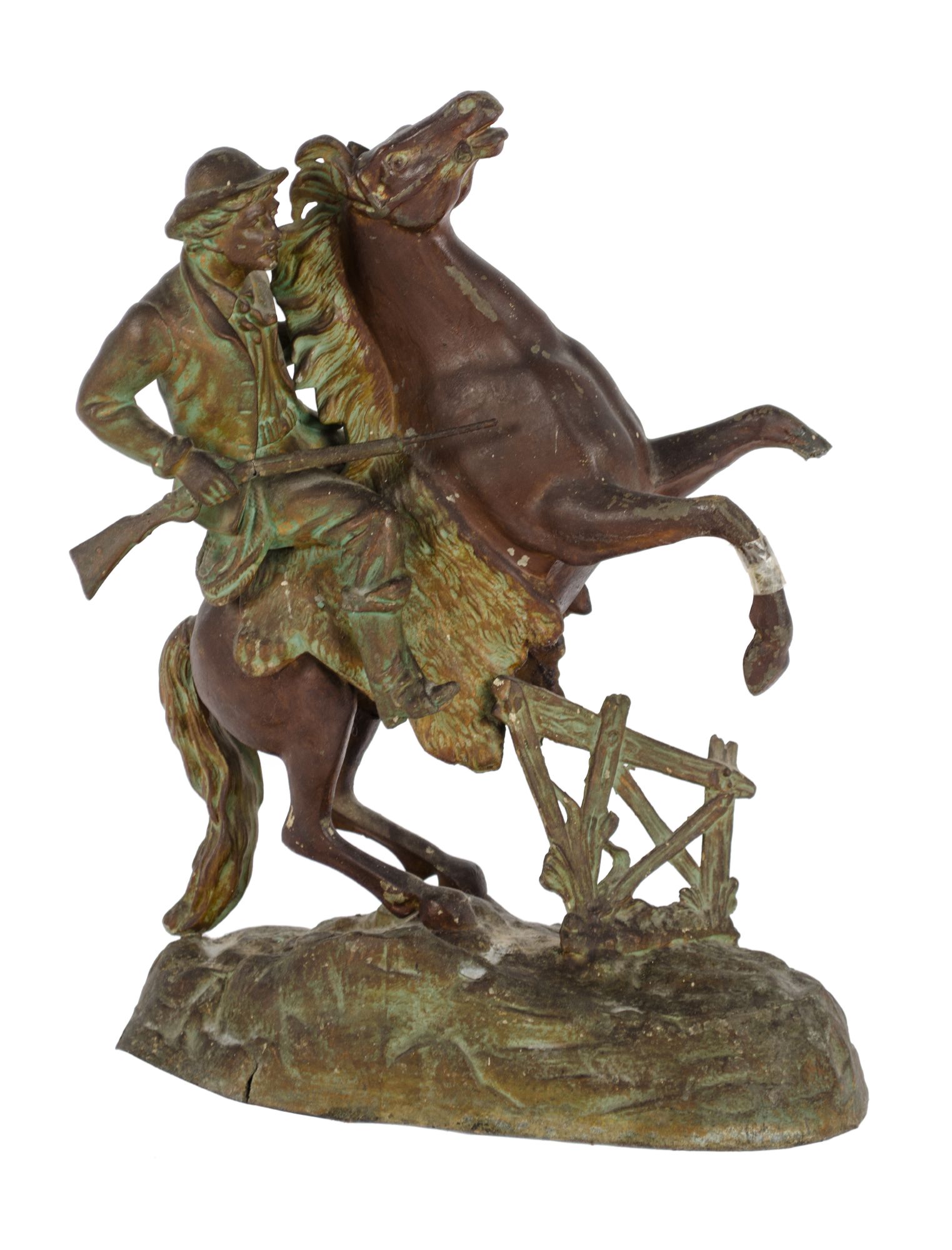 SCULTURA in metallo raffigurante "cacciatore a cavallo" (mancanze). Primi...