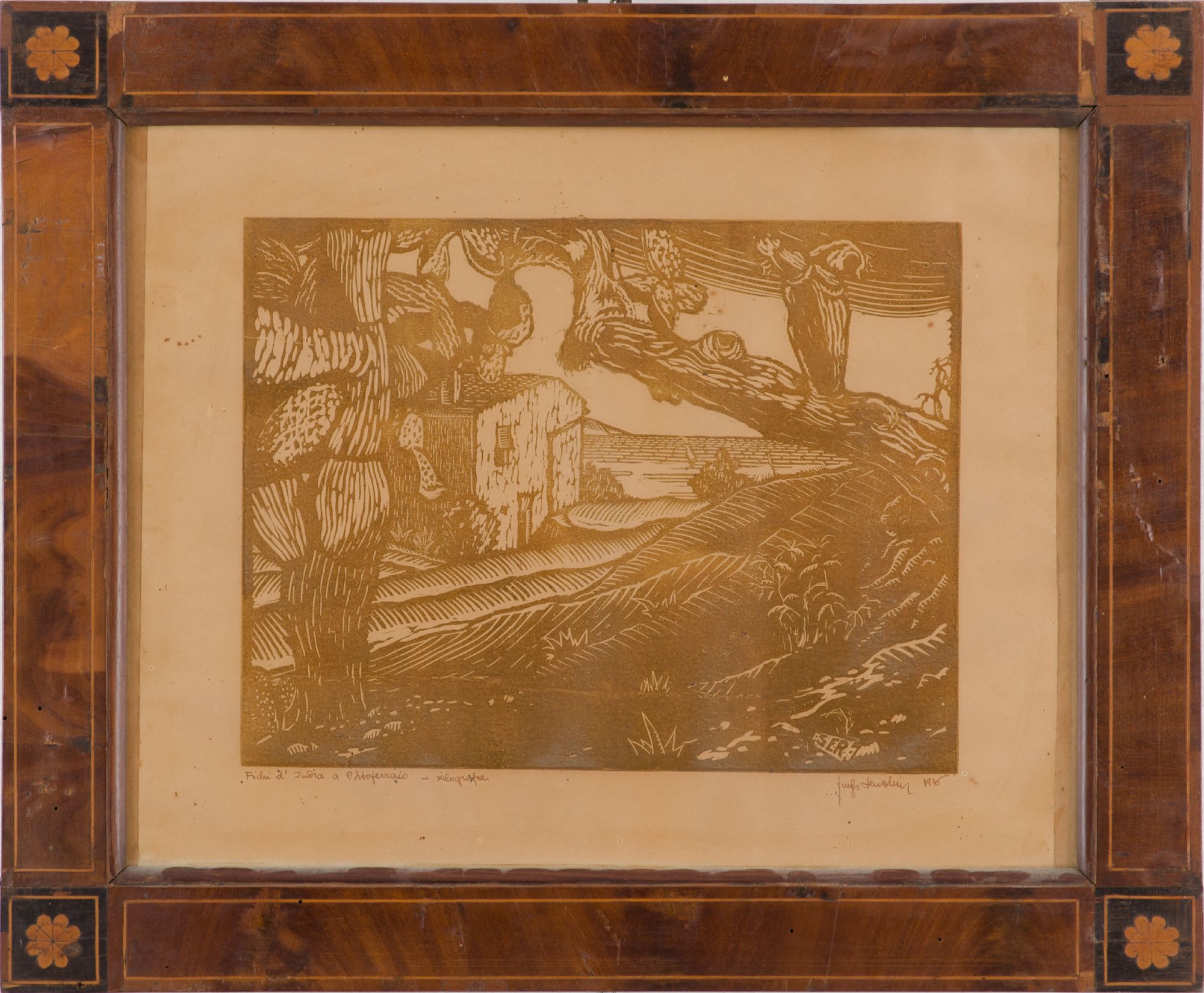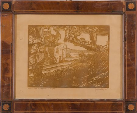 STAMPA "fichi d'india a Porto Ferraro" entro cornice in mogano con perfili in bosso. Primi '900 Misure: cm 35 x 45