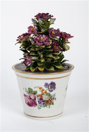 GRUPPO in porcellana Vienna dipinta a mano raffigurante "vasetto con composizione floreale". Austria XIX secolo Misure: h cm 16