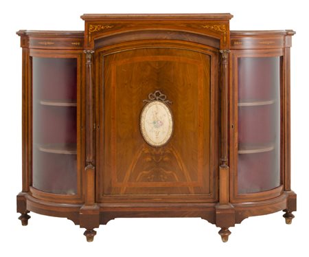 SERVANTE con anta centrale e due ante bombate laterali con medaglione...