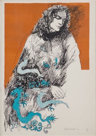 TOTO' BONANNO (Lercara Friddi (Pa) 1928 - Palermo 2002) LITOGRAFIA a colori "figura femminile", esemplare 22/90. Misure: cm 70 x 50