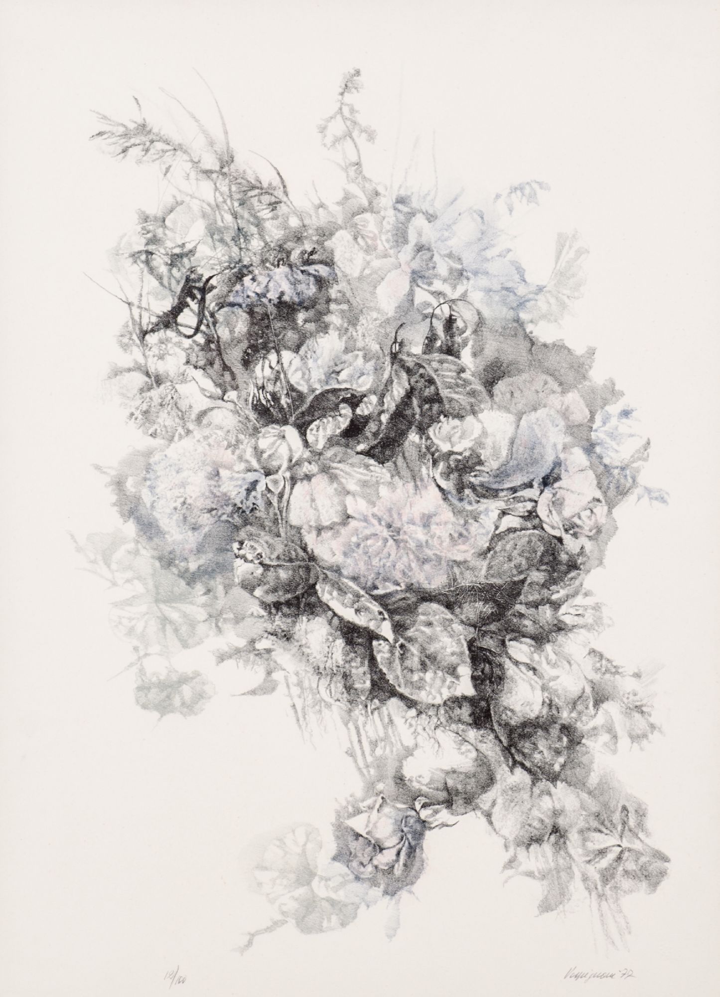 ENZO VESPIGNANI (Roma 1924 - 2001) LITOGRAFIA a colori "natura morta" con timbro di Alberto Caprini (Stampatore a Roma), esemplare 12/100. Misure: cm 70 x 50