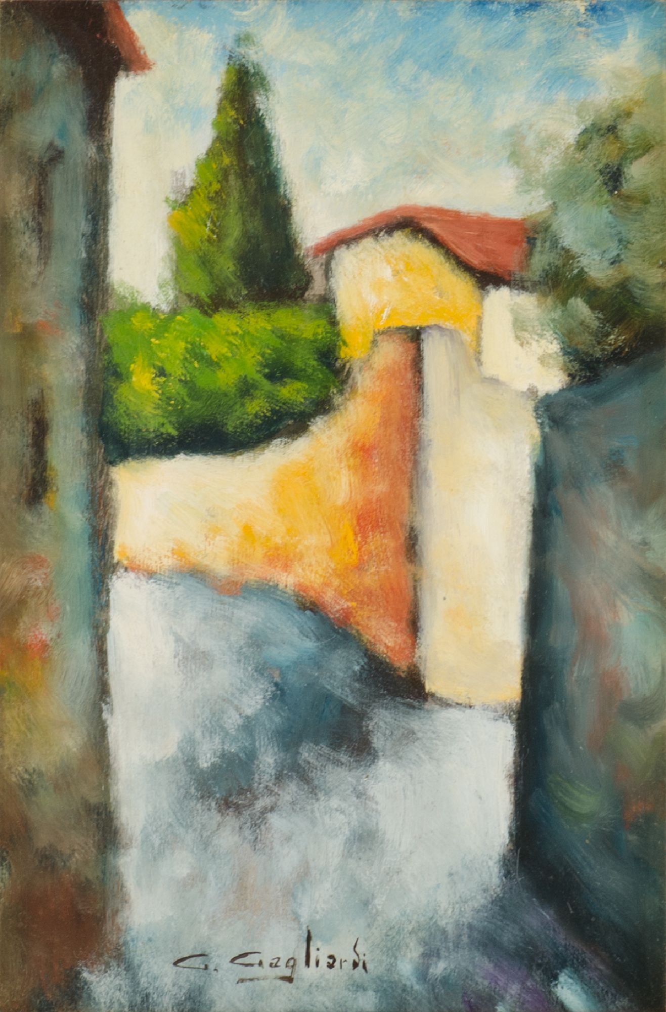 GIUSEPPE GAGLIARDI (1902 - 2005) OLIO su cartoncino "paesaggio", sul retro presenta timbro della Galleria Romana d'Arte Davide di Roma. Datato 1978 Misure: cm 30 x 20
