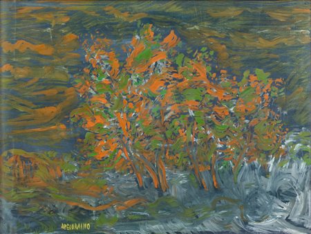 ALDO PECORAINO (1927) OLIO su tela "alberi - notturno", firmato in basso a sinistra. Misure: cm 59,5 x 70