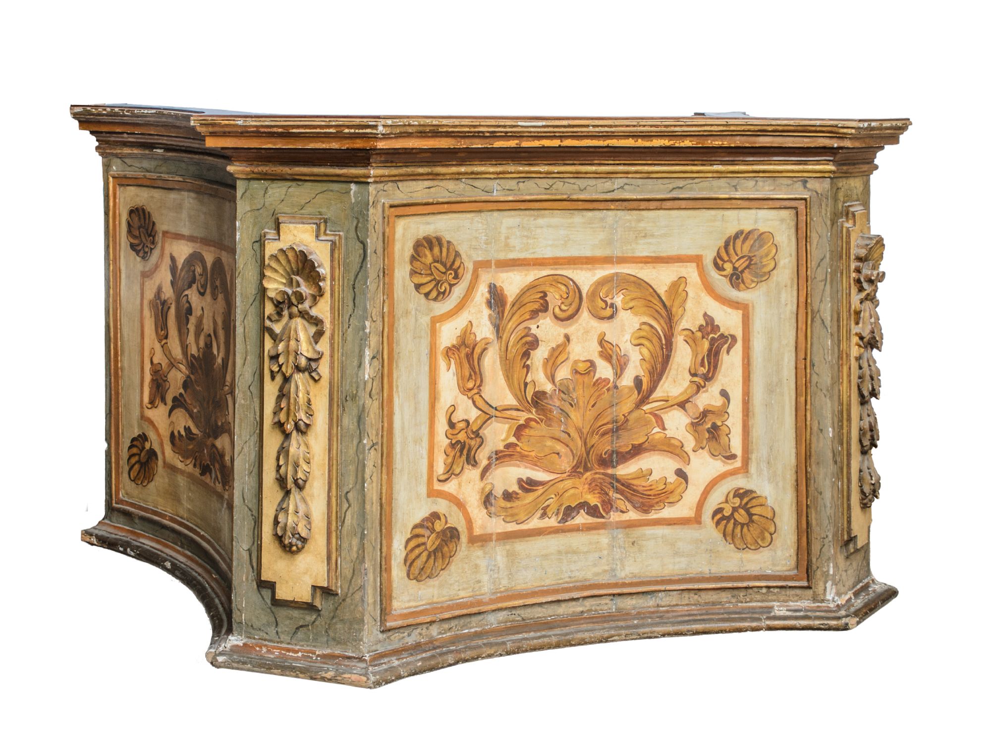 BANCONE in legno laccato e decorato con cassetti inferiori. Sicilia meta'...
