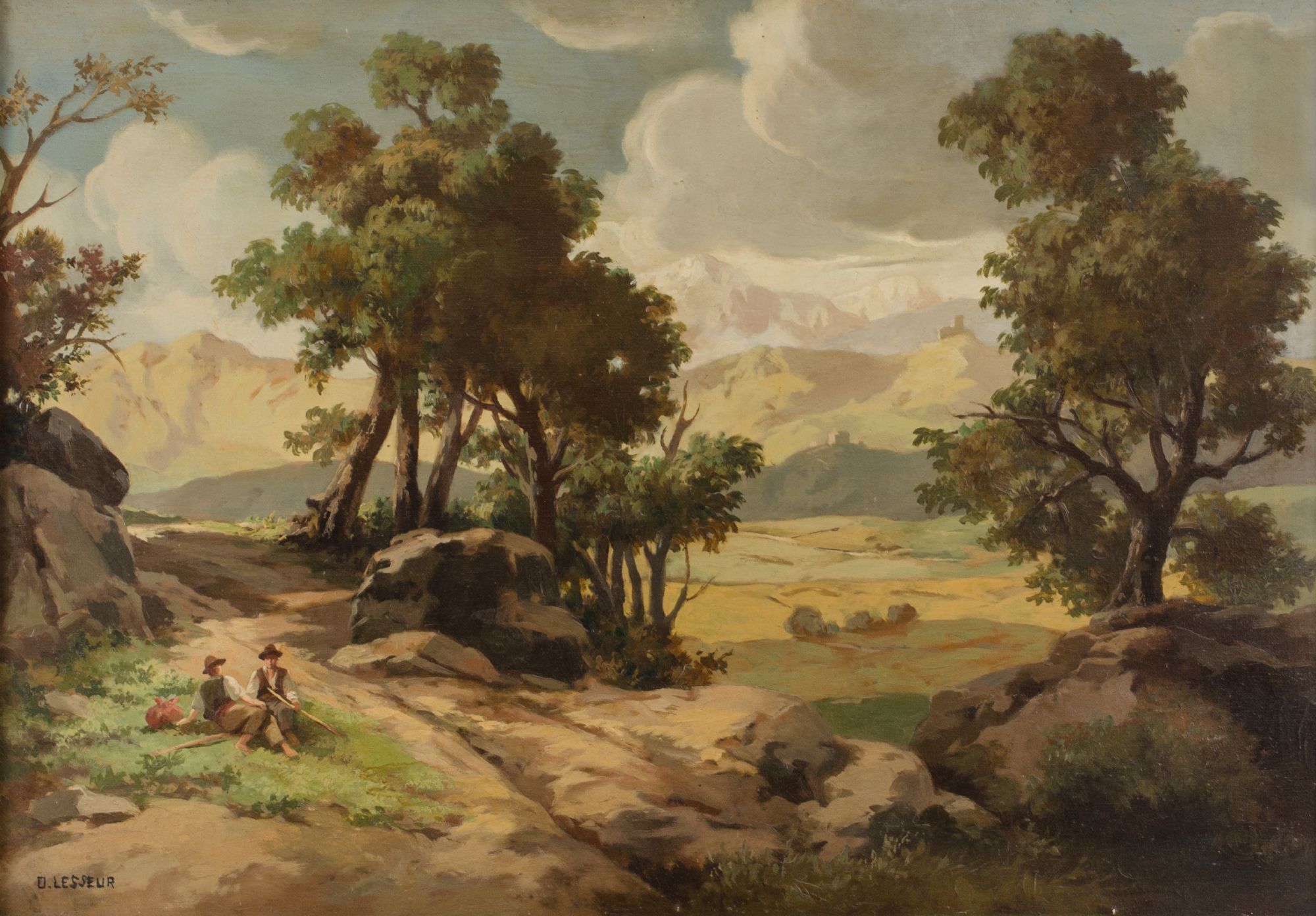 O. LESSEUR OLIO su tela "paesaggio campestre". Primi '900 Misure: cm 69,5 x 100
