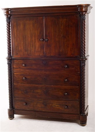 CHIFFONIERE Impero in palissandro a due ante e quattro cassetti. Sicilia I meta' '800 Misure: cm 146,5 x 62 x h 186