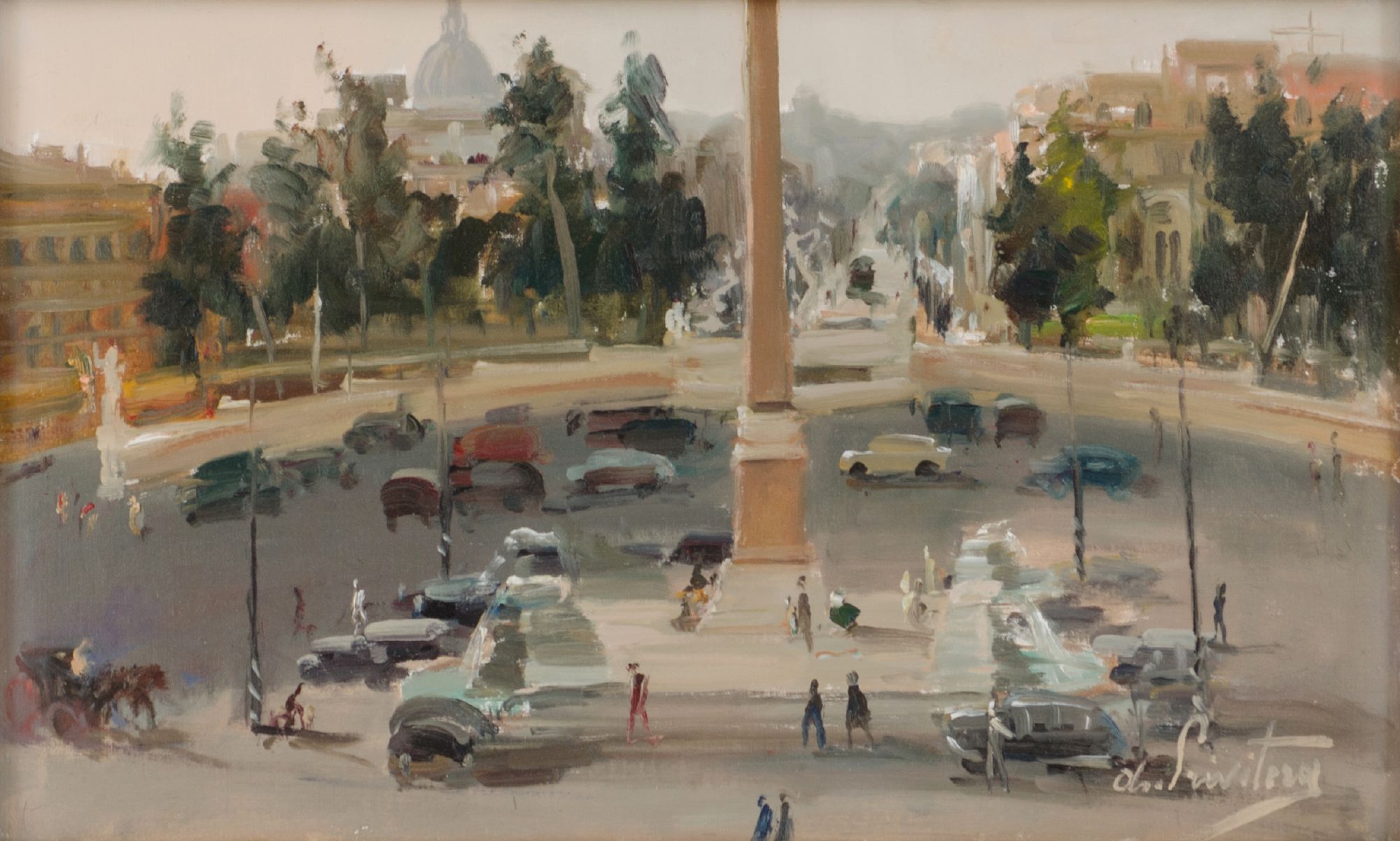 ANTONIO PRIVITERA (Catania 1910 - ?) OLIO su tela "piazza a Roma". XX secolo Misure: cm 30 x 49