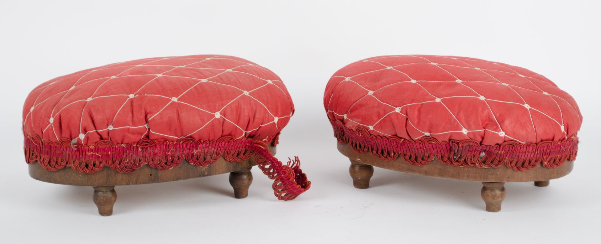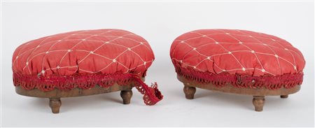 COPPIA PICCOLI POUF in noce. Italia primi '900 Misure: cm 34 x 24 x h 15