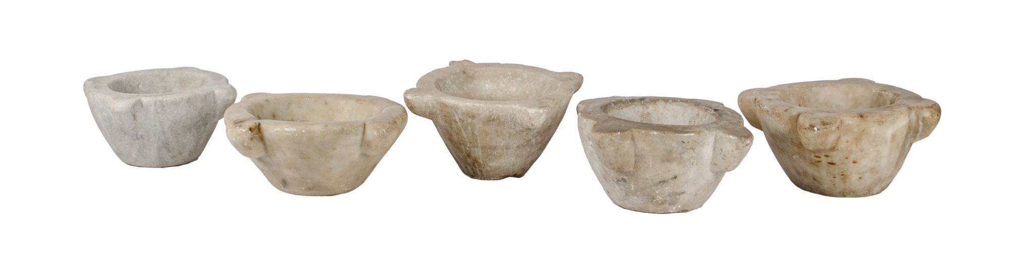 CINQUE MORTAI in marmo. Sicilia XIX secolo Misure: varie
