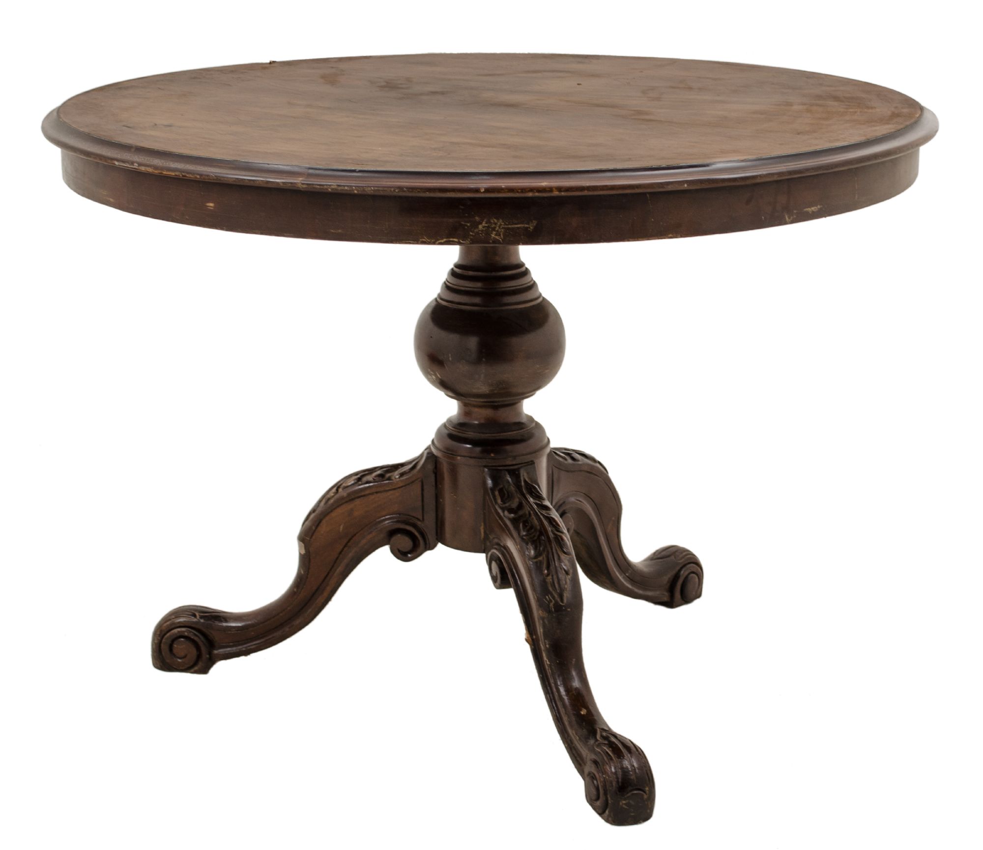 TAVOLO tondo in noce con piede tripode lavorato. Italia XIX secolo Misure: diametro cm 113 x h 78