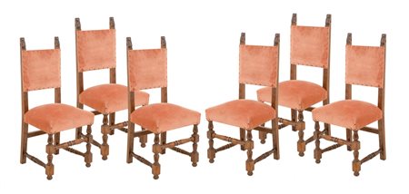 SEI SEDIE stile rinascimentale in noce (seduta h cm 49). Sicilia meta' '900 Misure: h cm 111