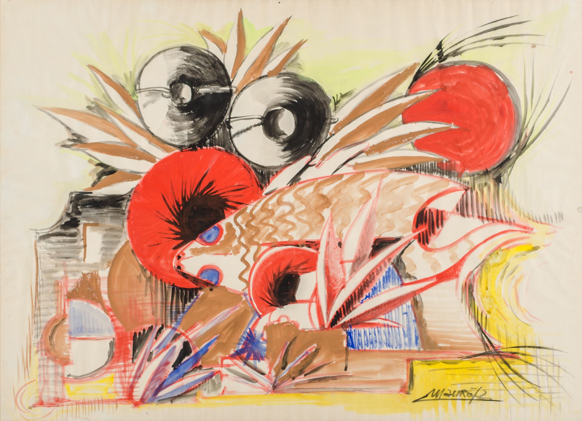 MAURO' ACQUARELLO "figura astratta", firmato in basso a destra. XX secolo Misure: cm 73 x 100
