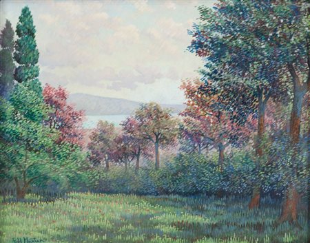 OLIO su cartoncino "paesaggio con alberi". XX secolo Misure: cm 42 x 52