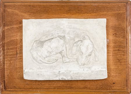 A. LAVARONE BASSORILIEVO in terracotta raffigurante "cane". Datato 1915 Misure: cm 17 x 12