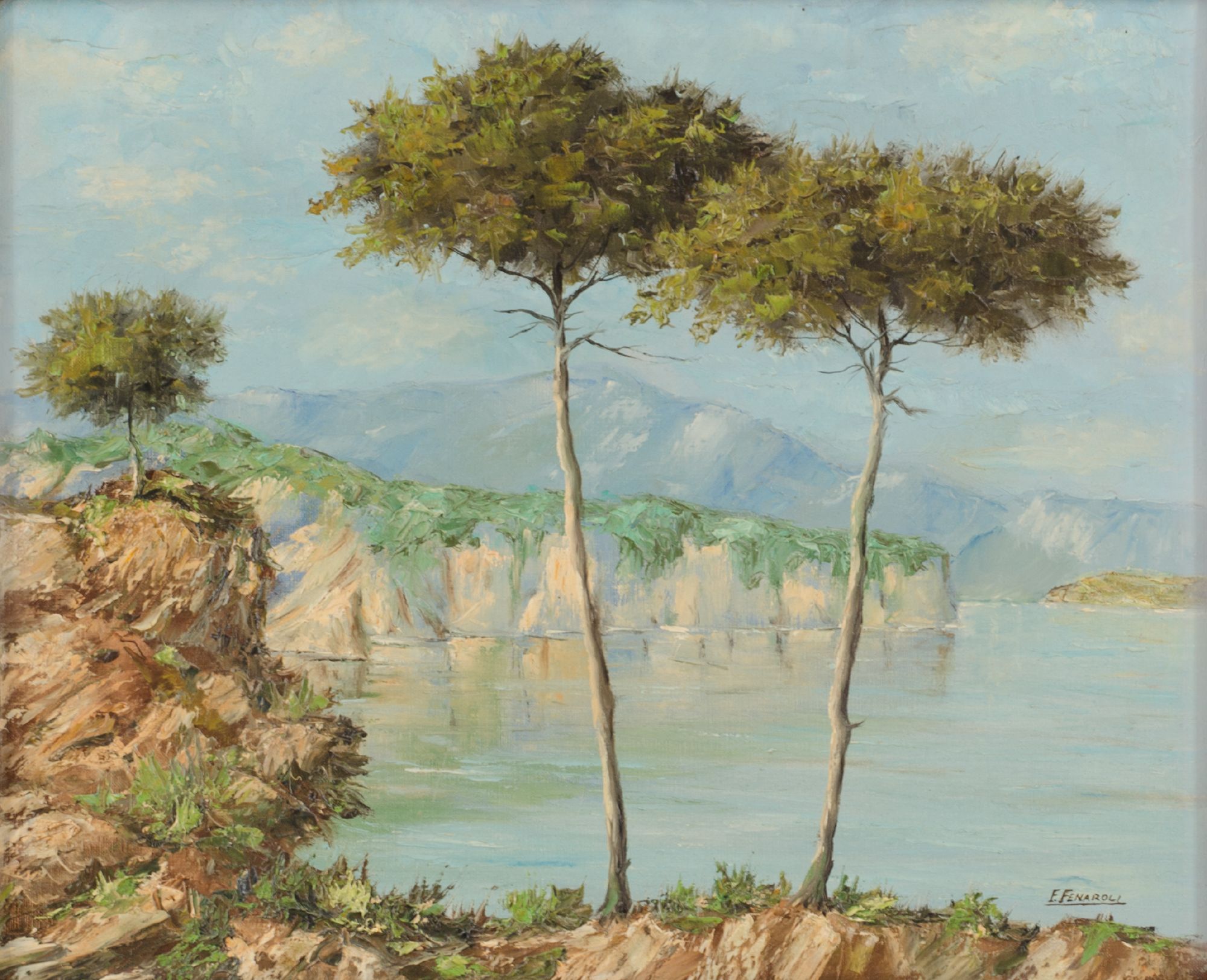 FRANCESCA FENAROLI (1952) OLIO su tela "scorcio di paesaggio lacustre"....