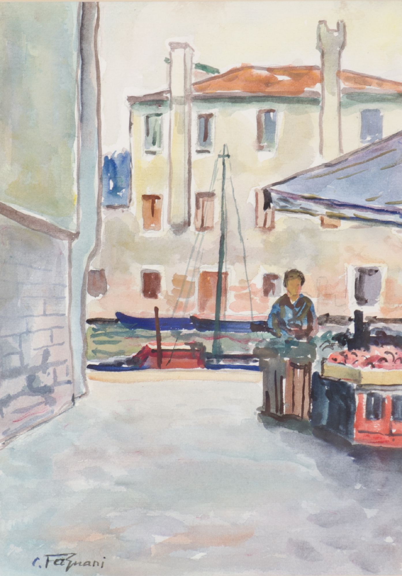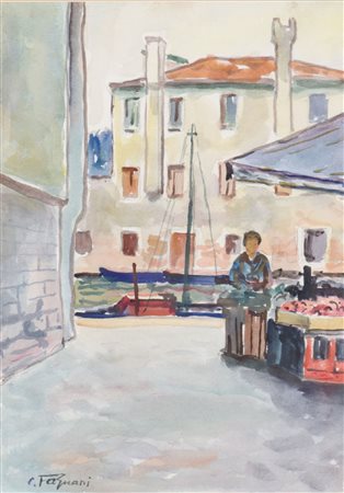CORRADO FERGNANI (Viguzzolo d'Alessandria 1910 - Milano 1986) ACQUARELLO "scorcio di Chioggia". Misure: cm 34 x 24