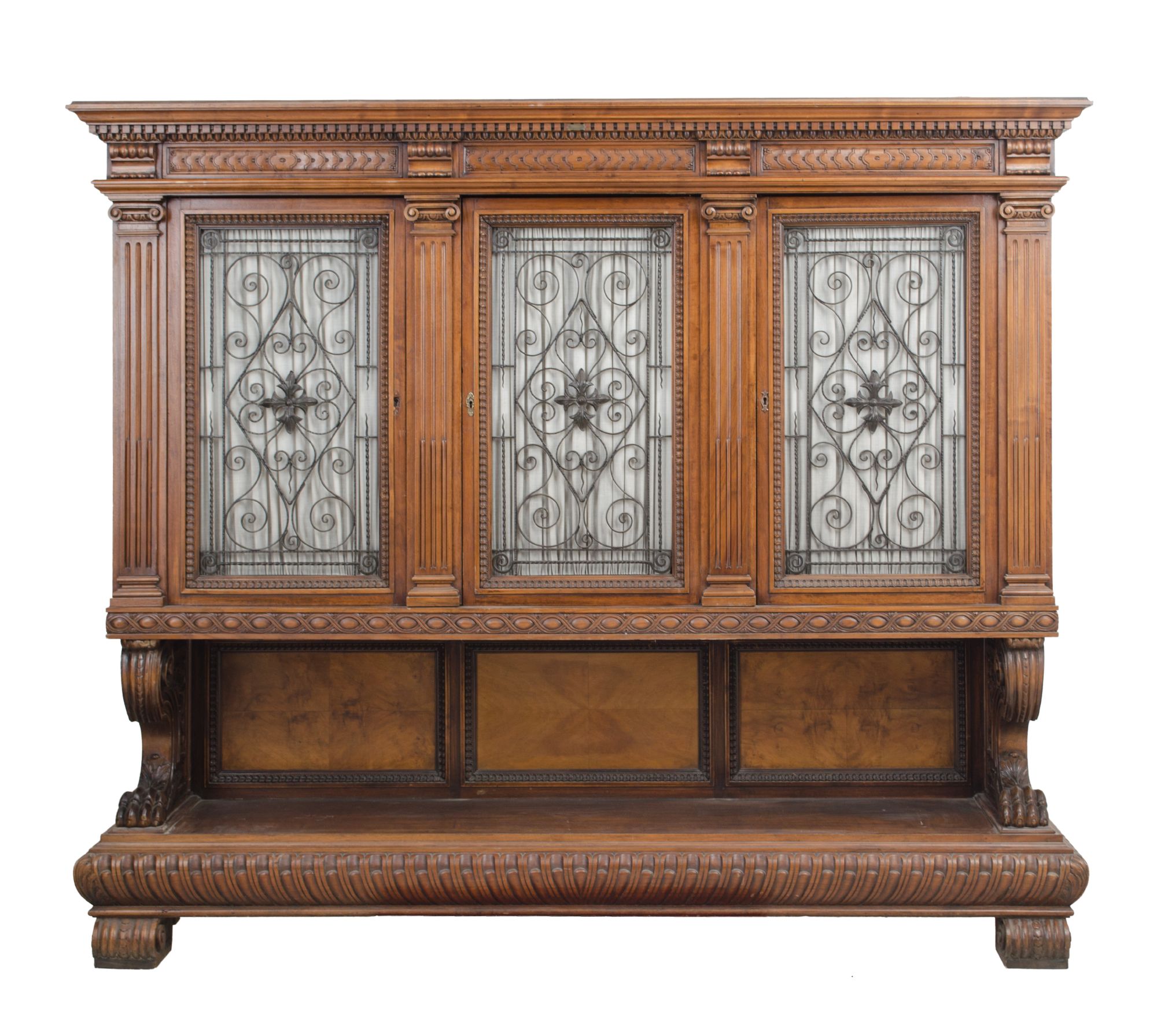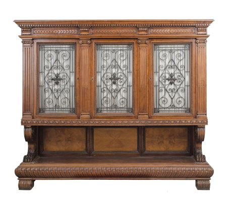 LIBRERIA stile console in noce a tre ante grigliate in ferro battuto. Sicilia...
