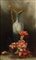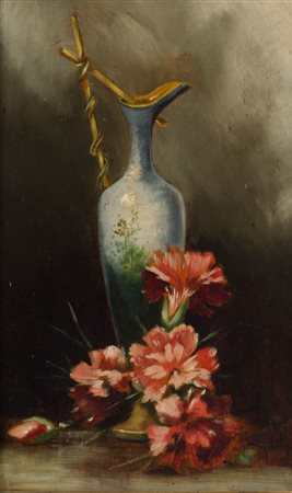 OLIO su tavoletta "anfora e fiori" entro cornice in legno ebanizzato. Primi...