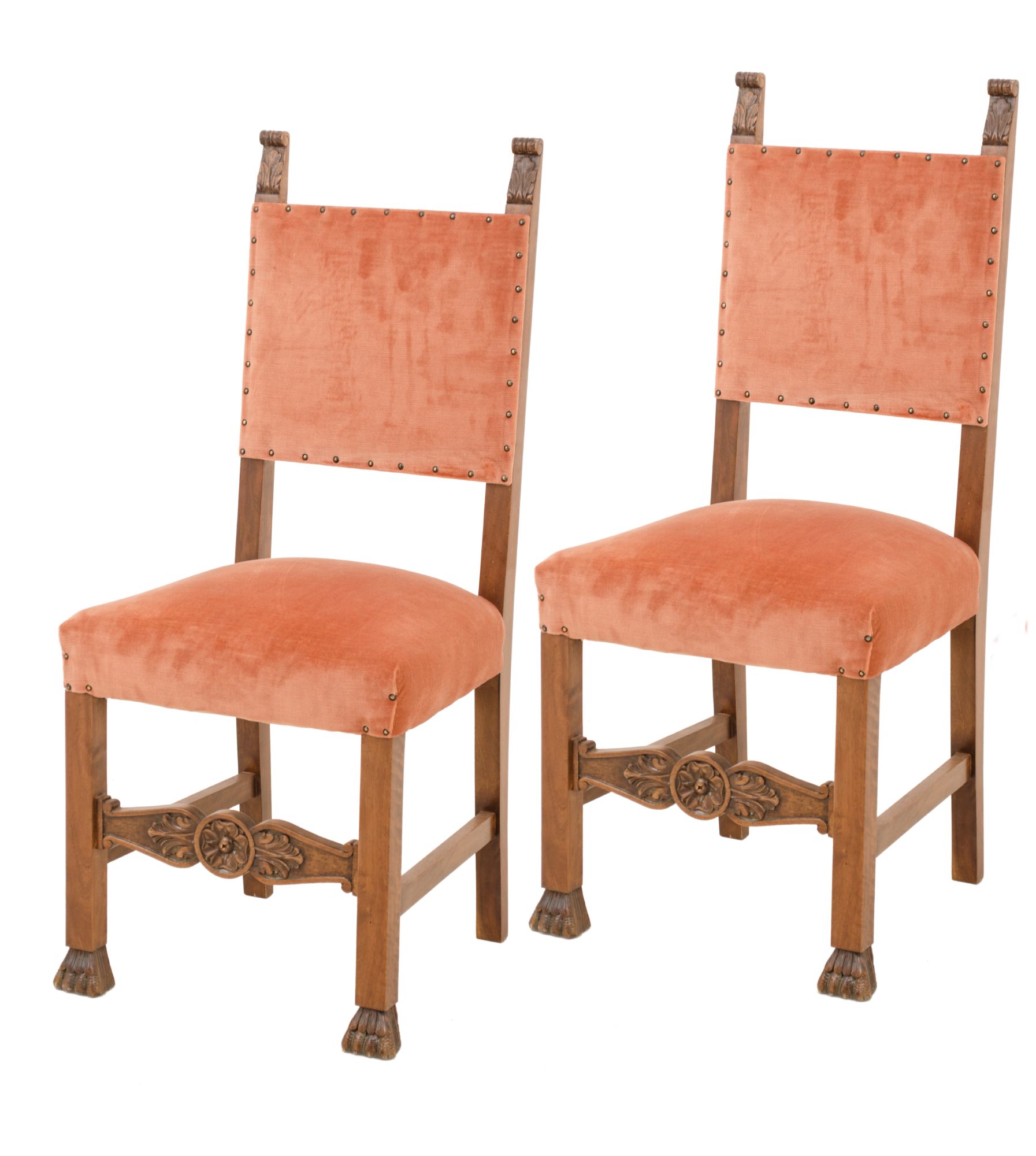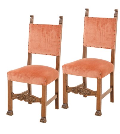 POLTRONA con due SEDIE stile rinascimentale in noce (seduta h cm 50). Sicilia...