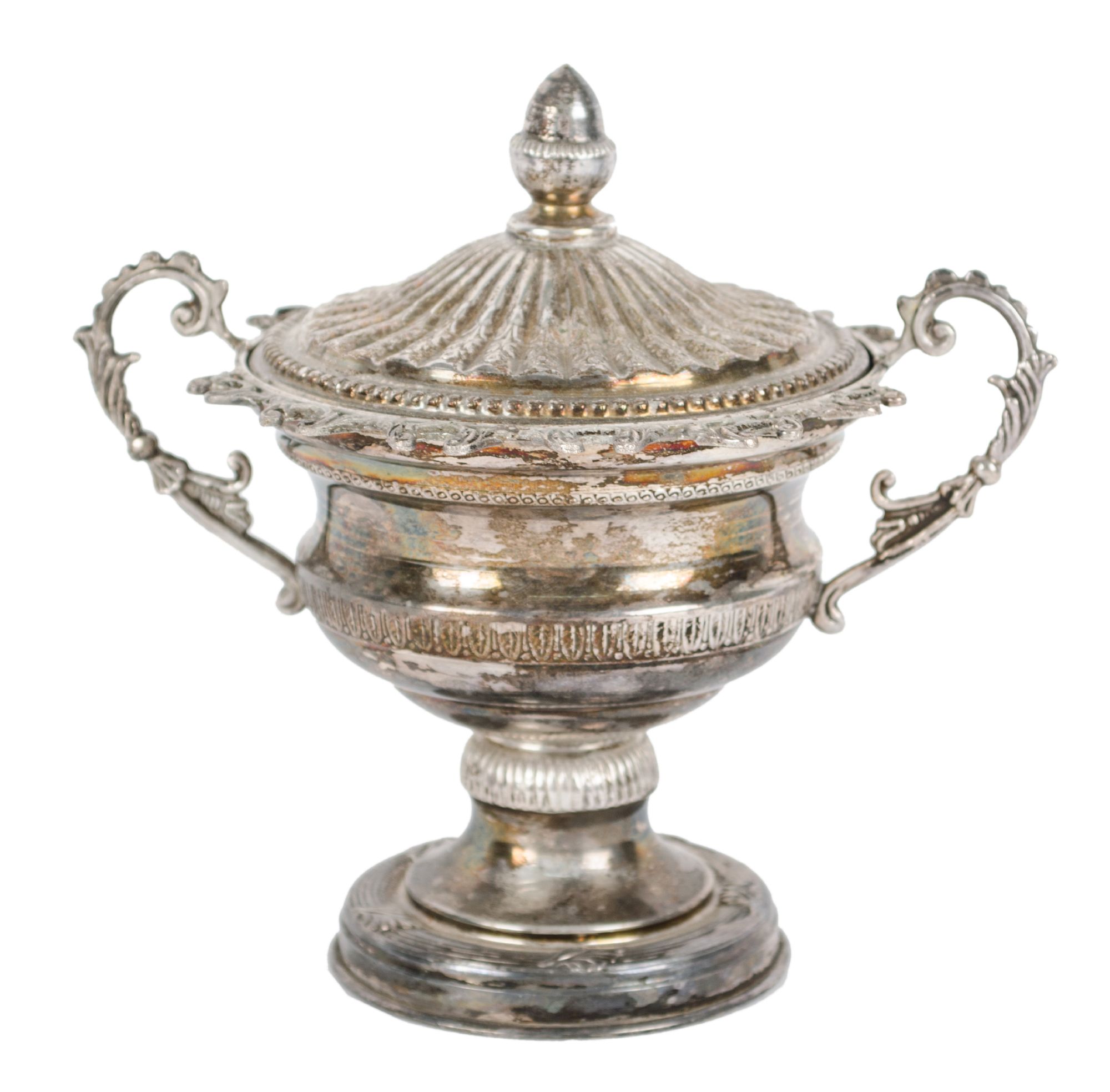ZUCCHERIERA in argento sbalzato (g. 135). XX secolo Misure: h cm 13,5