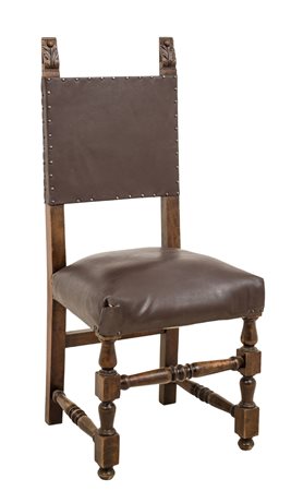 SETTE SEDIE in noce tappezzate in vilpelle (seduta h cm 50). Sicilia meta' '900 Misure: h cm 111