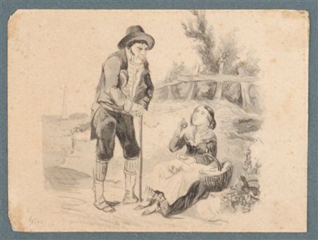 TECNICA mista su carta "contadini", firmato in basso a sinistra. XIX secolo Misure: cm 11 x 15
