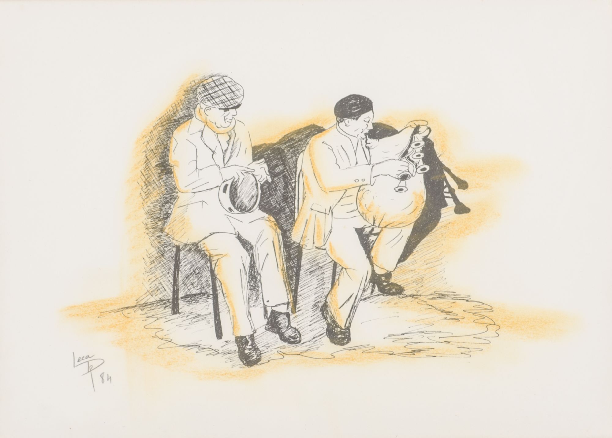 LELA TECNICA mista "zampognari". Datato 1984 Misure: cm 31 x 43