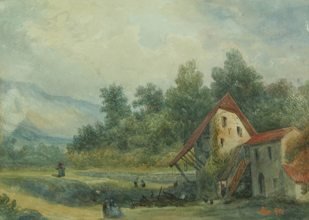 pittore francese dell''800 acquerello su carta, 1936 "Veduta di Montabon", cm...