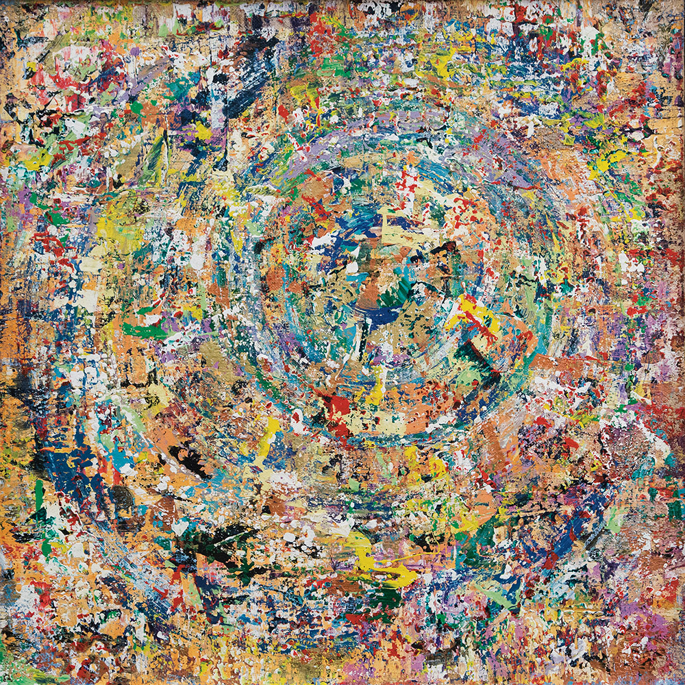 Feofeo tecnica mista su juta, 2015 "Paradosso", cm 80x80 Autentica dell'artista su foto Archiviato (cod: 78F2015) Pubblicato Ottobre 2016 su monografia editoriale G.Mondadori