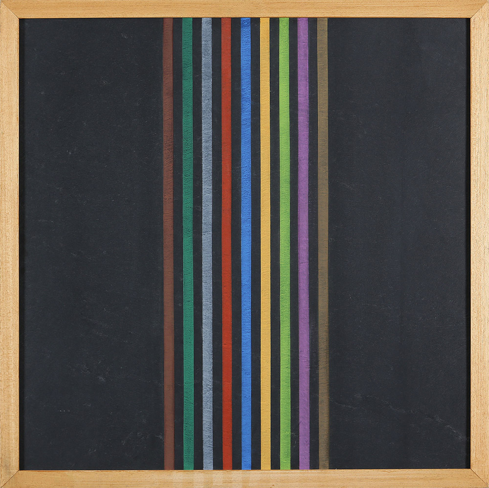 ELIO MARCHEGIANI 1929 Grammature di colore, 1974 Grammature di colore su lavagna, cm. 74 x 74 Firmato e datato sul retro Etichetta dell'artista sul retro Autentica dell'artista su fotografia BIBLIOGRAFIA: " Cotemporart ", trimestrale di arte e cultura, gennaio 2015, in copertina Prov. Collezione Privata