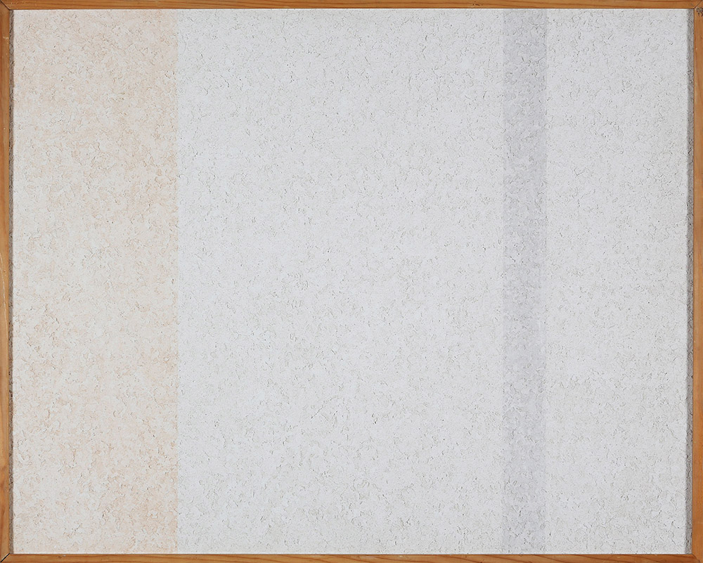 ELIO MARCHEGIANI 1929 Grammature di colore, 1975 Grammature di colore su intonaco, cm. 81,5 x 101,5 Firmato e datato sul retro Autentica dell'artista su fotografia Timbro Studio Sant'Andrea Milano sul retro Prov. Collezione Privata
