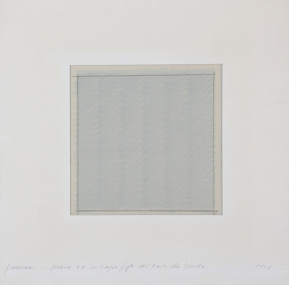 GIANFRANCO ZAPPETTINI 1939 Grafite 2B su cinque fogli di carta da lucido, 1975 Matite e carte sovrapposte, cm. 40 x 40 ( cm. 20 x 20 interno) Firmato e datato in basso Timbro Artline Amsterdam sul retro Prov. Collezione Privata