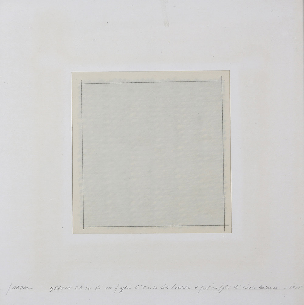 GIANFRANCO ZAPPETTINI 1939 Grafite 2B su di un foglio di carta da lucido + quattro fogli di carta bianca, 1975 Matite e carte sovrapposte, cm. 40 x 40 ( cm. 20 x 20 interno) Firmato e datato in basso Timbro Artline Amsterdam sul retro Prov. Collezione Privata