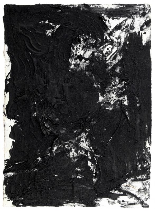 GIUSEPPE SPAGNULO (Grottaglie (TA) 1936) Panorama scheletrico del mondo 2010 catrame su carta arricciata cm 105x75 firmato,titolato e datato sul retro in fase di autentica