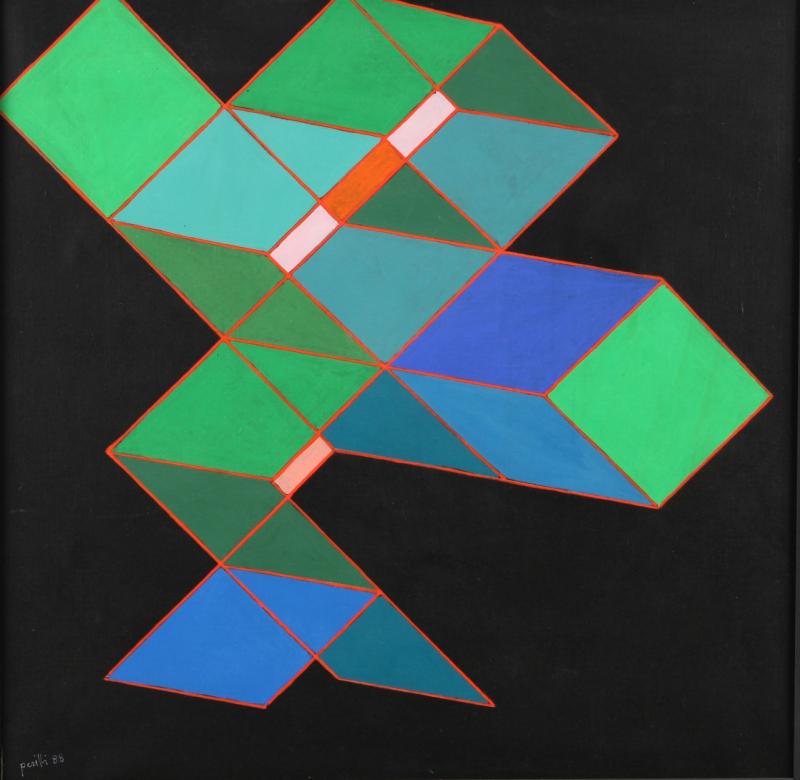 ACHILLE PERILLI (Roma 1927) La legge della trasparenza 1988 olio su tela cm 50x50 firmato titolato e datato sul retro autentica dell'artista su foto esposizioni: mostra personale Galleria Rotta Genova - publicato a catalogo