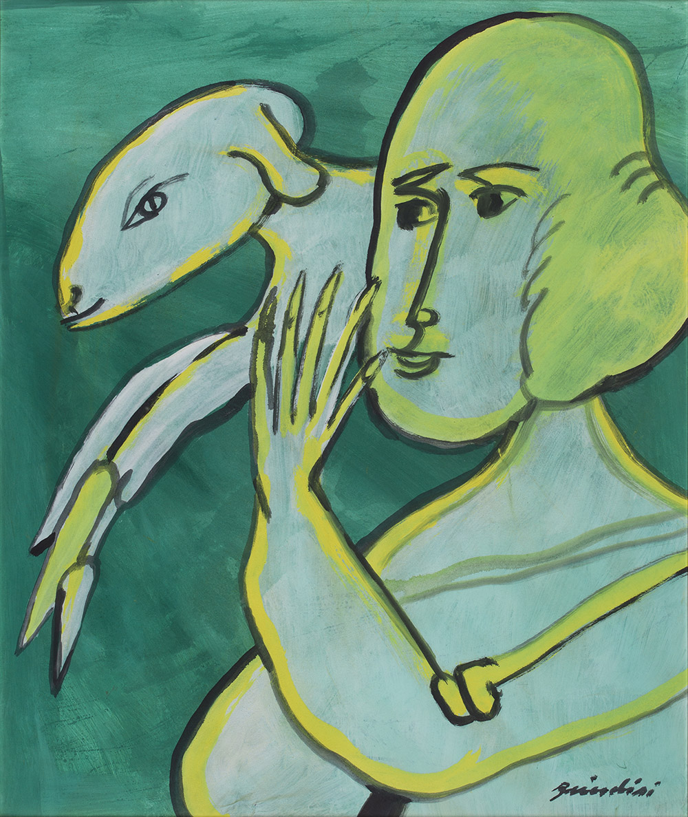 REMO BRINDISI (1918-1996)Pastorale Tempera su cartaCm 58x48Frima al...