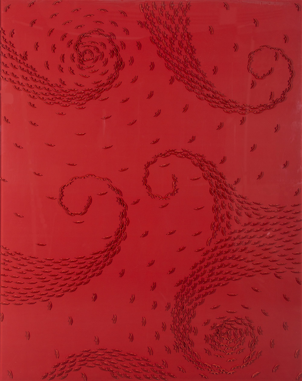 RICCARDO GUSMAROLI (1963)Vortice Rosso, 2009 Barche di carta su telaCm...