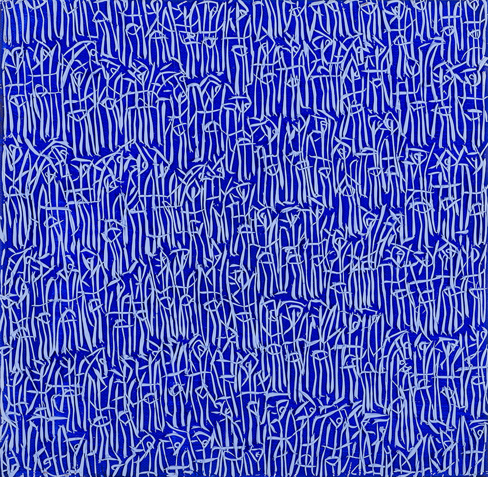 Firma, datazione e ideogramma dell'artista sul telaio