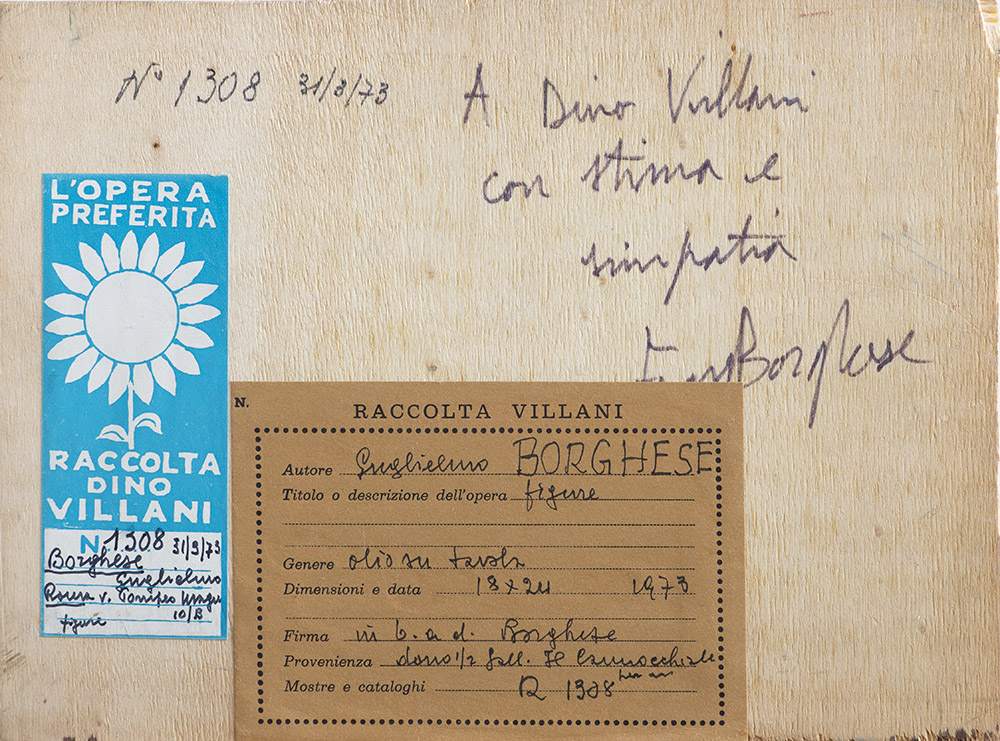 Doppio cartiglio descrittivo a cura della Raccolta Dino Villani con relativo numero di archiviazione al retro
