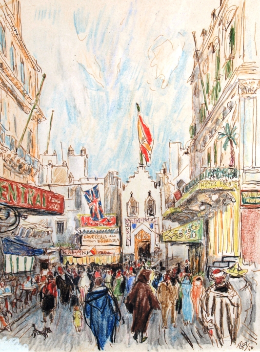 "Toledo" 1950 China colorata su carta cm. H: 29.00 L: 22.00 Firma ed anno in basso a destra. Al retro etichetta della Galleria d'Arte Ponte Rosso (Milano).