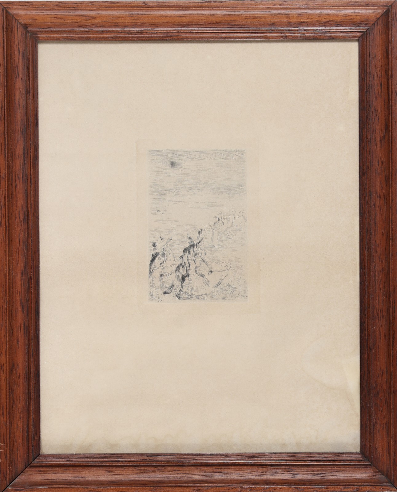 RENOIR PIERRE AUGUSTE (1841 - 1919) Sur la plage. 1890. Incisione. Cm 25,00 x 37,00. Dimensione lastra: 10x14 cm. Firma in lastra in basso a destra.