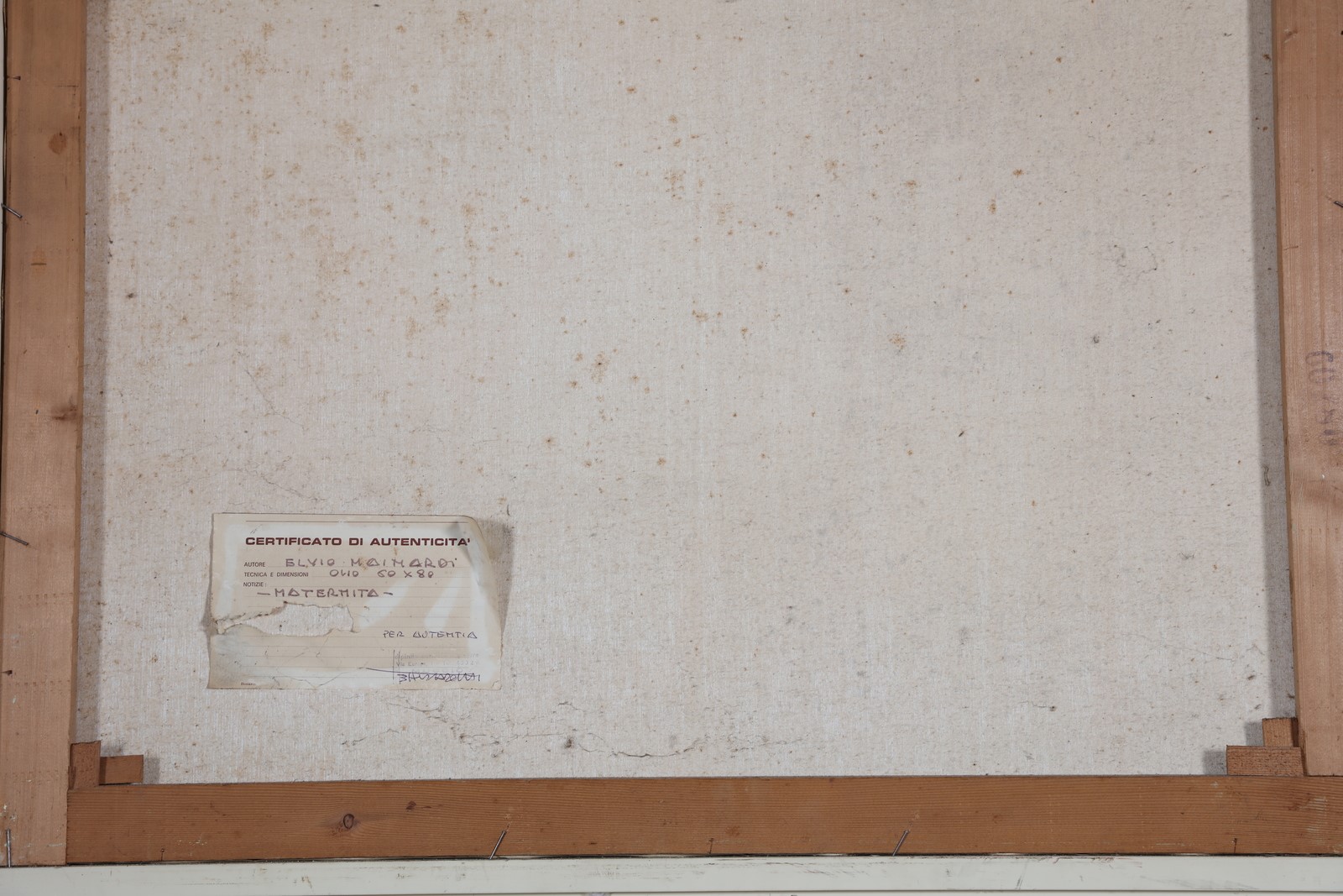 MAINARDI ELVIO (n. 1934) Maternità. . Olio su tela. Cm 80,00 x 60,00. Firma in basso a sinistra. Al retro titolo e autentica dell'artista.