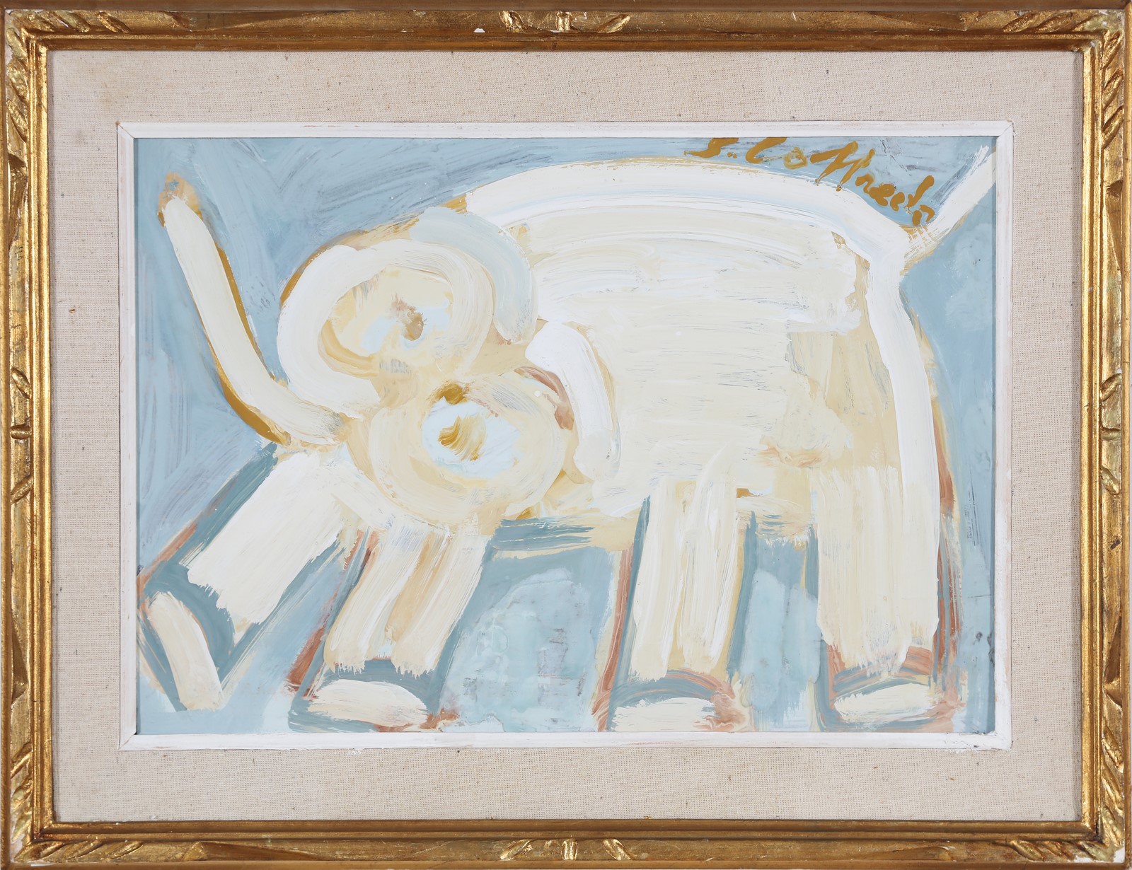 LOFFREDO SILVIO (n. 1921) Elefante. Olio su faesite. Cm 50,00 x 35,00. Firma in alto a destra e al retro.Autentica dell'artista su fotografia. Cornice presente