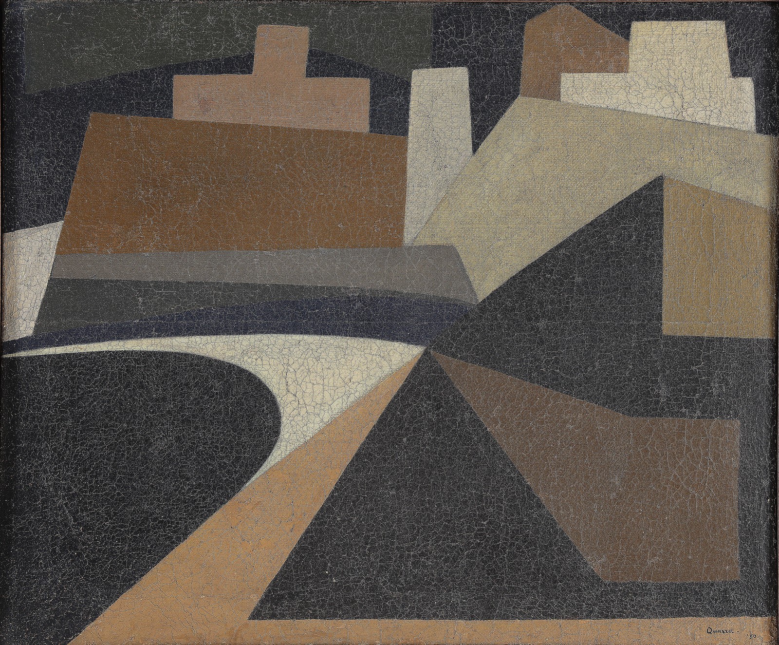 ARTISTA DEL XX SECOLO Composizione - A. 1950. Olio su tela. Cm 68,00 x 54,00. Firmato Quarra in basso a destra e datato. La tela presta crachelature.